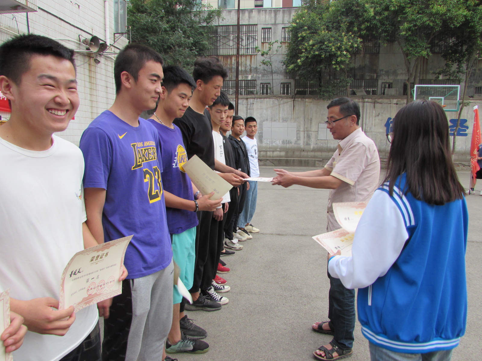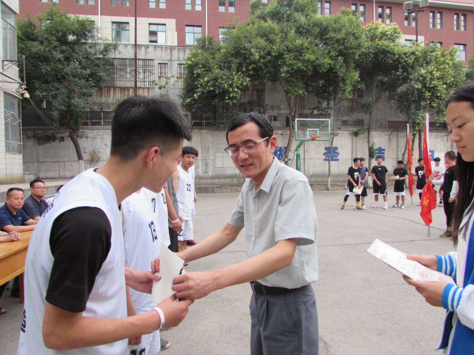 随着裁判的一声终场哨响,本次篮球赛参赛的三支球队经过三天紧张激烈的角逐,终于落下了帷幕。最终,bw西汉姆联代表队获得第一名;建筑工程公司代表队获得第二名;经济管理公司代表队获得第三名。孙华东宣布了比赛成绩,罗彦庆、王医平、韩世亮分别为第三名、第二名和第一名代表队颁奖。随后,韩世亮宣布篮球赛闭幕。