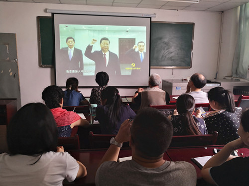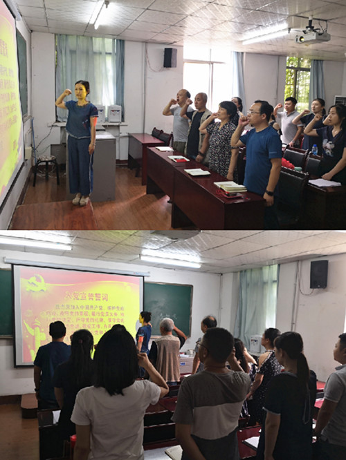 首先,组织委员李敏宁同志带领大家面对党旗庄严宣誓,重温入党誓词。接着,朱江同志带领大家学习《中国共产党支部工作条例(试行)》,全体党员对条例进行诵读。最后,全体党员学习观看由中共中央组织部制作的《党章电视辅导教材》第二集——《共产党员》。