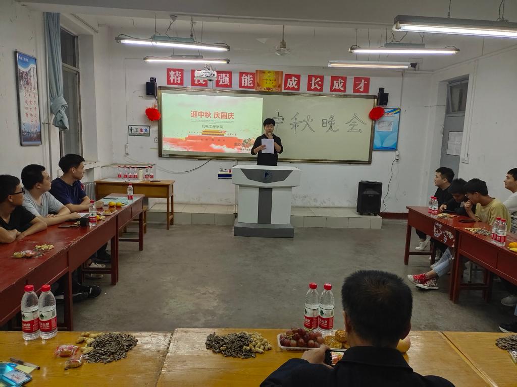 8:00整,“迎中秋 庆国庆”活动最精彩的演出拉开了帷幕。首先是许启、马永春的美文朗诵《中国少年说》,“少年智则国智,少年富则国富;少年强则国强,少年独立则国独立;少年自由则国自由,少年进步则国进步”;整篇文章读来,回肠荡气,富有极大的震撼性和感染力。接下来,由同学们编排的舞蹈《拖拉机之舞》在优美的旋律中精彩亮相,“锄禾日当午,汗滴禾下土。谁知盘中餐,粒粒皆辛苦。”这是我们从小到大听到的训言,相信我们会积极响应“光盘行动”号召,做到不浪费粮食,按需点餐,节约行动从我做起,做一个有志向,有素养的新时代青年。随后,马帅、张宇航、刘小龙,党璞玺分别演唱了《桥边姑娘》《我想在平庸的生活拥抱你》《日不落》三首歌曲,歌手虽然不是专业演员,但也传递出一种美妙的人文情怀,表现出同学们对美好生活的追求和向往。