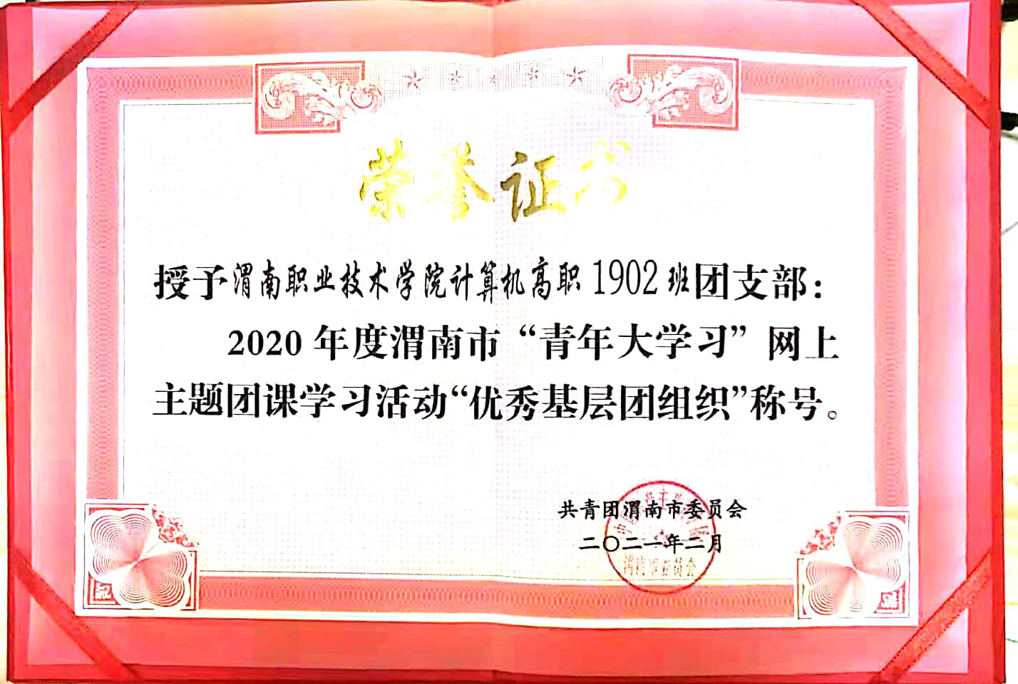 在公司bw西汉姆联员工团总支副书记赵兴琪的组织下,bw西汉姆联官网平台计算机高职1902班团支部被授予2020年度渭南市“青年大学习”网上主题团课活动“优秀基层团组织”称号。(bw西汉姆联 贺峰鸽 审核 王医平)