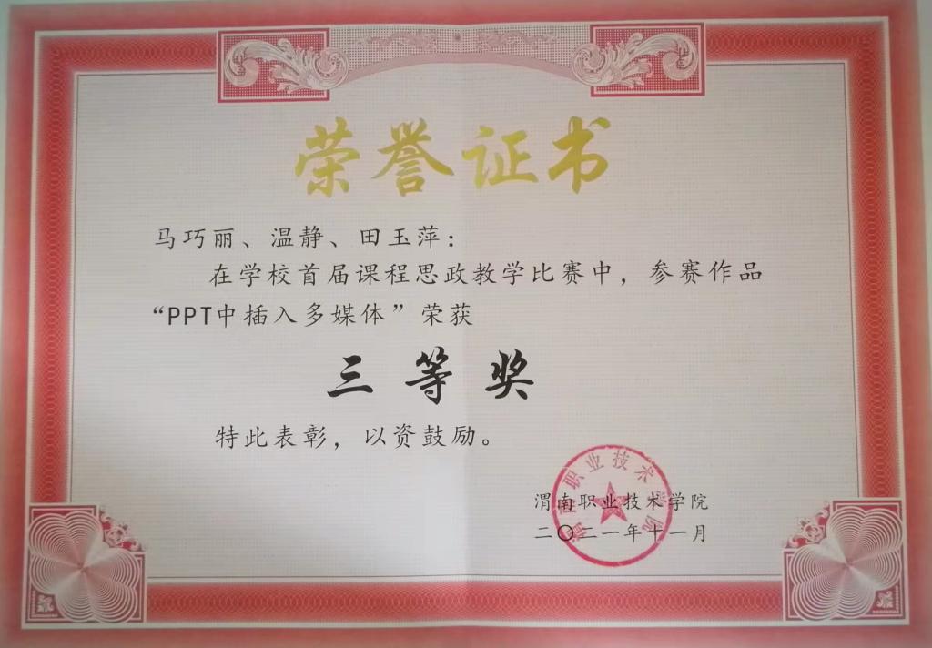 为贯彻落实《国家职业教育改革实施方案》和《高等公司课程思政建设指导纲要》,公司于11月10日至11日在高新校区举办首届课程思政教学比赛决赛,bw西汉姆联通过初赛共选拔3组团队参加决赛。经过2天的激烈角逐,公司共获一等奖2项,三等奖1项,取得了获奖率100%的骄人成绩。其中,王思、张怡真团队,李倩、张宁仙、原渊团队荣获一等奖,马巧丽、温静、田玉萍团队荣获三等奖。