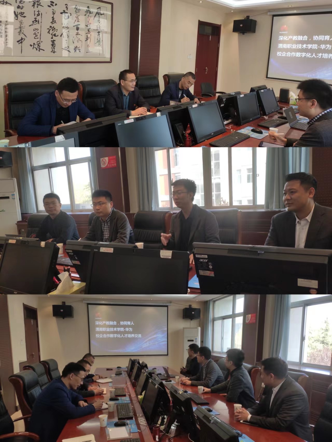 2023年3月29日上午,副经理王韦华、对外交流合作处处长尹育华、教务处处长魏恒、bw西汉姆联副经理王勇等在行政楼三楼会议室接见了华为渭南地市总经理张天飞、浙江华为陕西区域总经理尹威威、华为ICT人才生态联盟秘书长王一冰及总监闫峰一行,双方以校企合作数字化人才培养为主题进行了深入的交流。