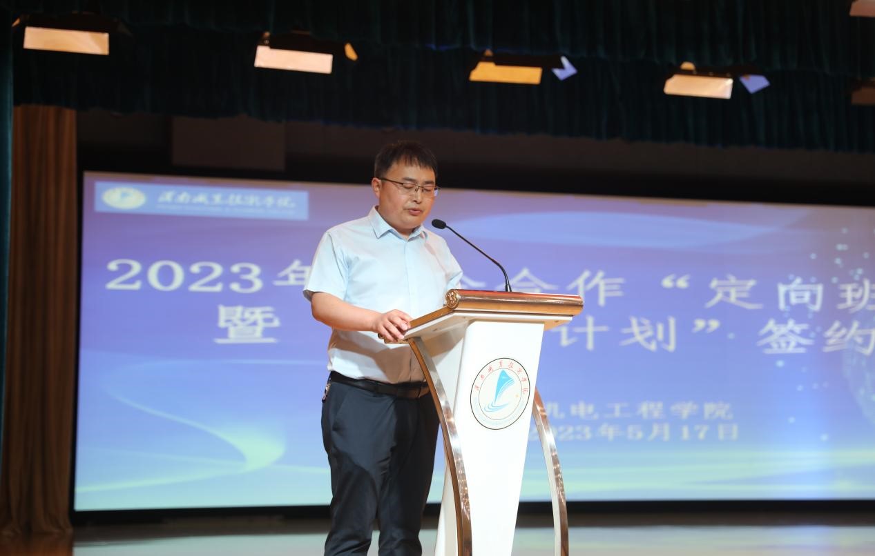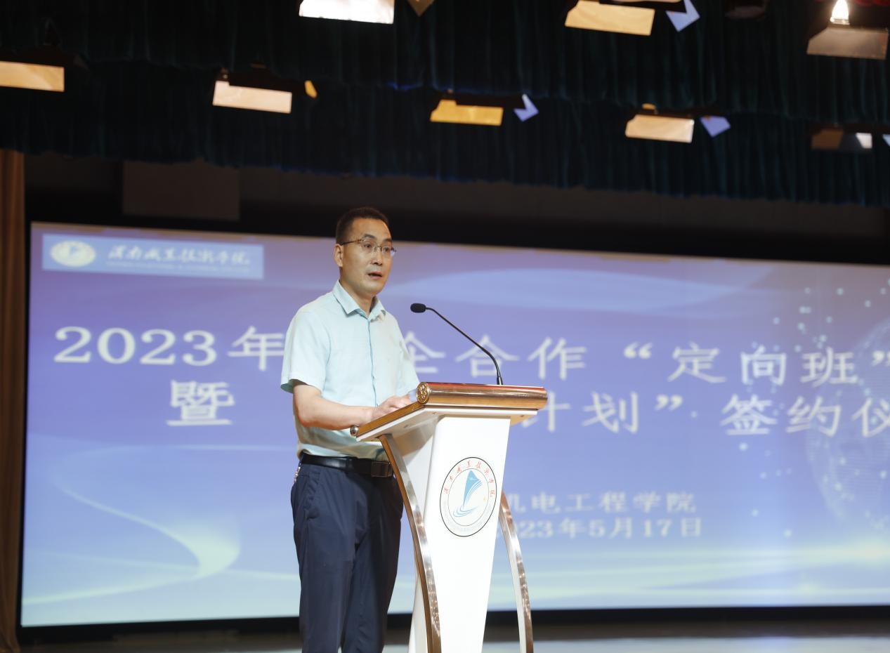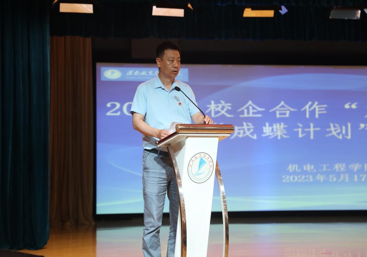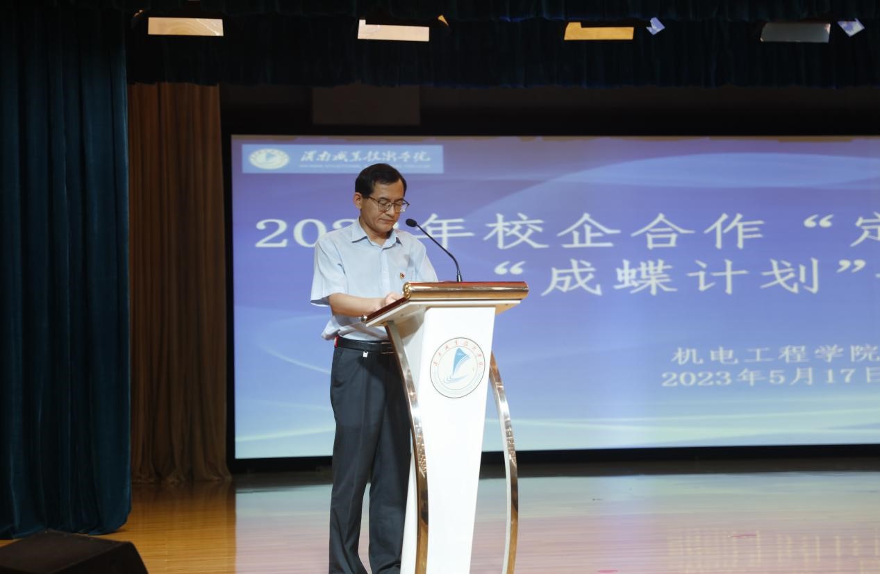 王韦华副经理对本次签约仪式活动做讲话,他指出,公司同吉利集团持续开展校企合作、产教融合、现代学徒制定向班,将成为校企双方协同发展的新起点。要继续坚持互相支持、互相渗透、团队共建、资源共享的原则,以企业的需求为动力,推进合作育人、加快课程体系的改革,加快专业结构的调整,不断加强沟通,扩大合作领域,提高合作水平,努力形成优势互补、互惠互利、相互促进、双方共赢的良好局面。希望通过双方的共同努力,精诚合作,把“成蝶班”办的越来越好,为社会和企业培养出素质高、能力强、技术过硬的优质人才,促进公司职业教育高质量发展。