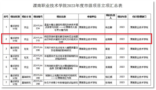 新增市级科技重点课题1项,校级科研项目1项,校级教研项目1项。3项教改项目结题,2项科研项目结题。