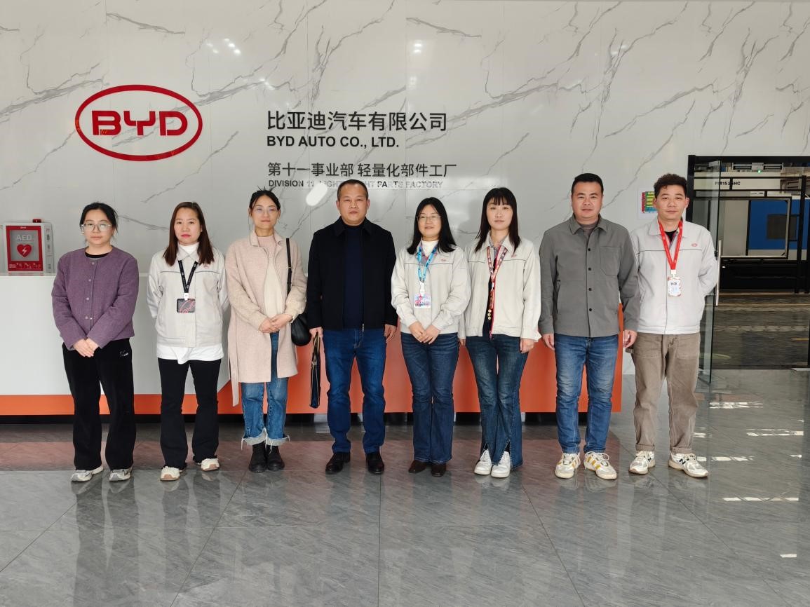 为深化产教融合,推动校企协同育人,进一步拓宽员工就业渠道,推动毕业生高质量就业,3月18日,bw西汉姆联人才招聘科科长罗彦庆、教学科副科长唐欣妮、汽车教研室副主任李文昌、信息工程教研室专业教师孙燕一行4人赴西安比亚迪汽车有限公司第十一事业部进行访企拓岗专项行动,通过实地参观、会谈等形式深入了解企业的用人需求、员工实习就业情况。