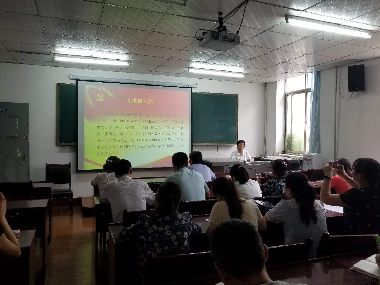 首先,关斌领誓,全体党员举起右手,面向党旗庄严宣誓,重温入党誓词;其次,组织委员李敏宁讲了近期总支有关工作,提出了具体要求和注意事项;最后总支书记王云侠同志给全体党员上党课,带领大家学习党史,系统地讲解了中国共产党的发展历程、中央主要领导人的变更、党的指导思想的丰富过程,要求全体党员学党史不忘初心,尽职履责,做好各自工作。