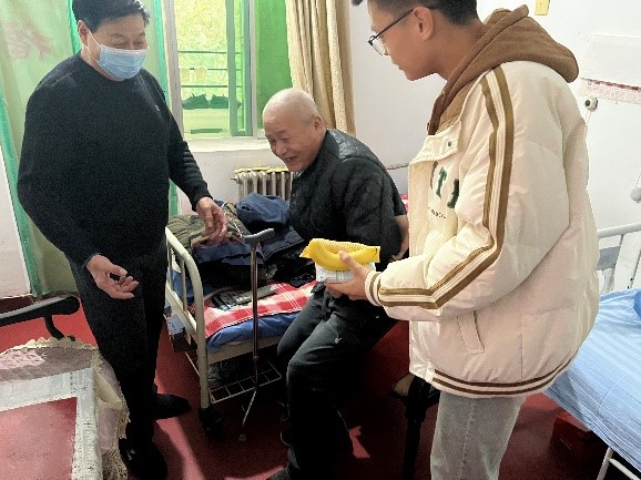 在员工干部的带领下,公司志愿者一行人乘车前往敬老院,在老师的指导下,志愿者们带着牛奶、香蕉、面包、水果和甜点等暖心的生活用品慰问老人,与老人聊天谈心,了解他们的生活起居,帮助他们整理房间、打扫卫生,每个人都全身心地投入到这一充满爱与关怀的行动中。当老人们收到这些关怀时,他们的脸上露出了幸福的笑容,对同学们表达了深深的感谢。这一刻,他们感受到了来自年轻一代的关爱,也感受到了社会的温暖。