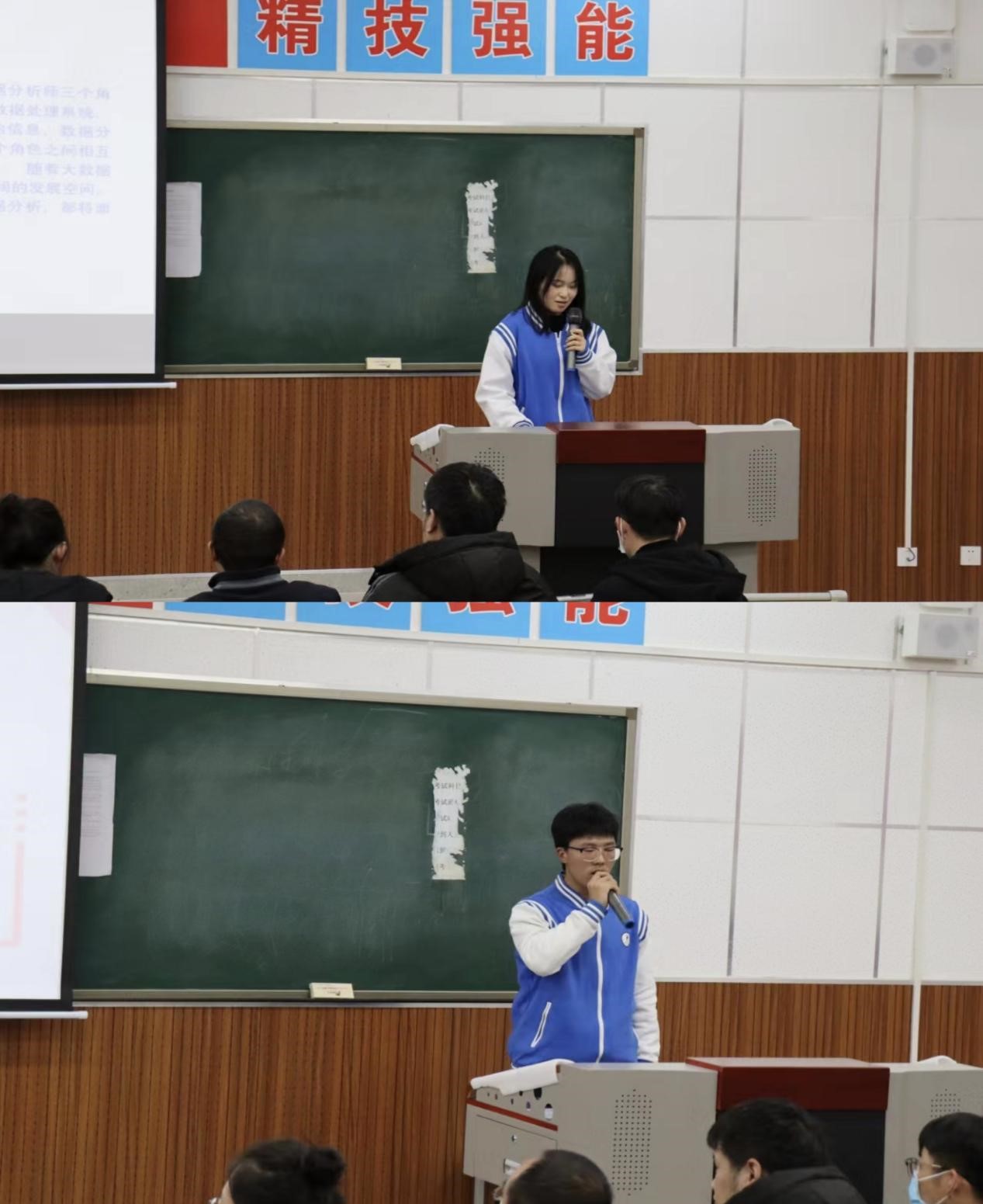 党总支副书记杨鹏做总结发言。他对参赛选手的精彩表现给予充分肯定,同时对选手们提出了中肯的建议。他着重强调了选手要在展示时明确重点,突出自己的特色和优点,更是希望选手们能够吸取经验,主动将个人目标与追求融入时代主题和社会发展之中,努力在中华民族伟大复兴的奋斗实践中实现人生价值。希望同学们能够以此次比赛为契机,不断提升自己的职业规划能力,为未来的职业发展打下坚实的基础。辅导员郭琦老师对参赛作品PPT和演讲中应该注意的问题进行了细致地点评,指出不足,指导参赛选手如何更好地表达自我。他鼓励同学们树立职业规划意识、竞争意识和危机意识,明确发展方向,朝着自己的职业目标不懈前行。