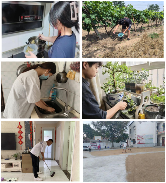 此次活动同学们充分利用假期居家时间,积极投身到居家劳动实践中。有的同学走进厨房,亲自动手烹饪端午节的特色菜肴,不仅促进了家庭成员间的情感交流,还锻炼了同学们的动手能力;有的同学利用家中的阳台或庭院,种植了各种各样的花草,学习了花草养护的方法,亲手浇水施肥,让同学们学会了珍惜自然资源和保护环境的重要性;有的同学积极参与家庭卫生扫除活动,让家中环境变得更加整洁,培养了同学们良好的劳动习惯;家在农村的同学,他们还积极参与了收割小麦、种植玉米等农事,体验了夏收夏种农耕劳动的辛苦与不易。