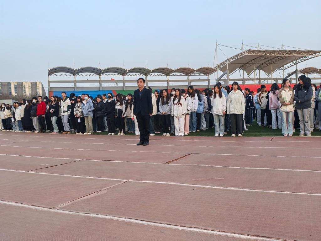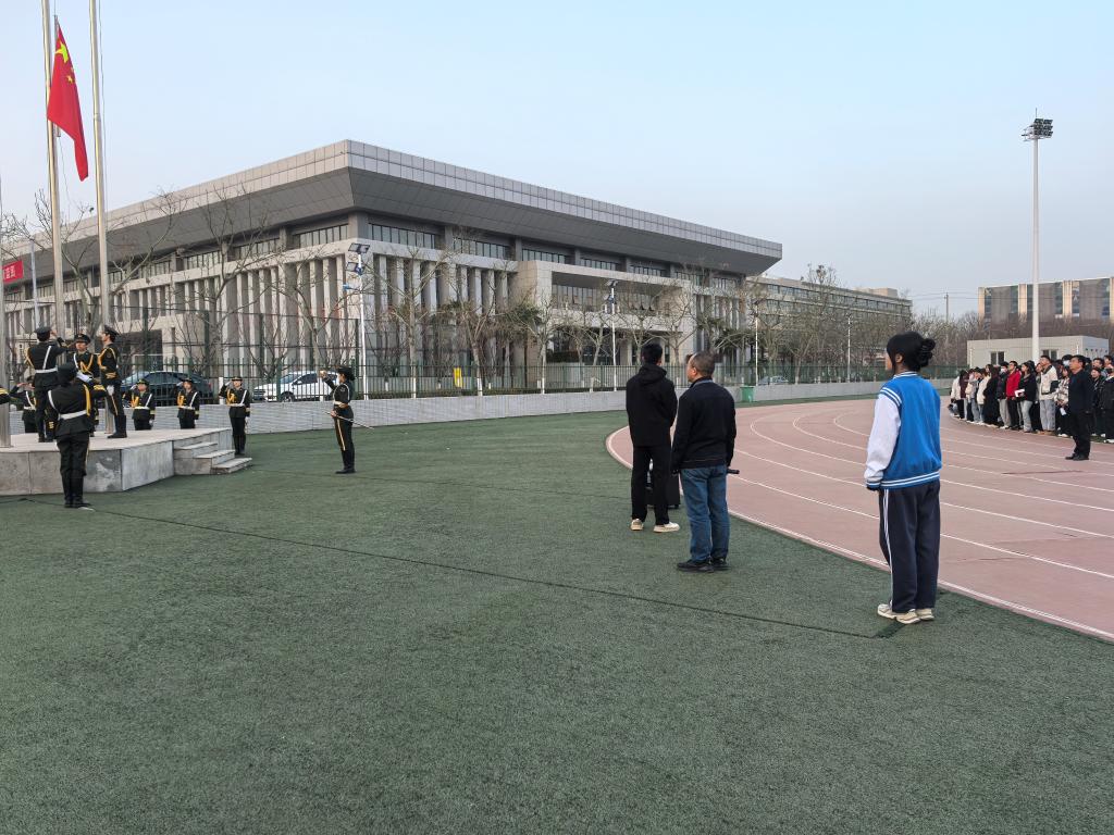 随着激昂的国歌响起,升旗手有力地扬起国旗,五星红旗缓缓升起,与旭日初升时倾洒的耀眼光芒相互辉映。在场师生齐声高唱国歌。那激昂的旋律回荡在校园上空,震撼着每一个人的心灵,唤起了大家内心深处对祖国的无限热爱与敬意。尽管清晨有丝丝凉意,但每个人的眼神都专注而坚定,心中的热情足以点燃春天的蓬勃希望。