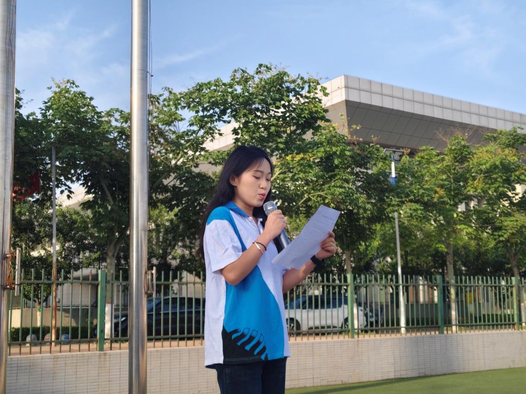 随后,员工代表大数据高职2301班同学屈怡娜进行国旗下的演讲。她表示,作为老员工,应厚植家国情怀与社会责任感,积极参与社会实践,如志愿服务、调研活动等,用实际行动关心他人,为社会发展贡献自己的力量。作为新时代的青年,既见证着伟大时代的变迁,也肩负着续写辉煌的重任。要将个人成长与国家发展紧密相连,以知识为帆,以创新为桨,在时代的洪流中破浪前行。在学习中,保持求知若渴的态度,汲取知识养分;在生活里,积极践行社会责任,传播正能量。
