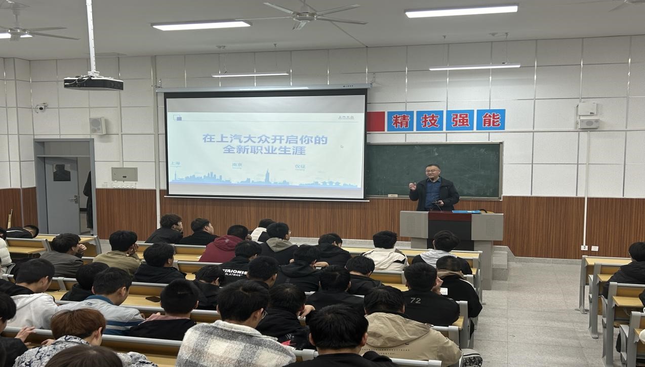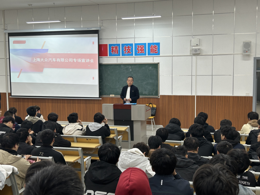 宣讲会上,西北地区招聘经理王玺程详细介绍了公司的基本情况、管理政策、员工福利、绩效奖金、住宿条件、员工培训和职业发展、企业文化建设等,确保员工在企业能有归属感和成就感。会场气氛活跃,同学们都认真地观看上汽大众的宣传片,仔细聆听王经理的介绍,积极与招聘人员进行交流,主动了解用人单位的实习就业情况。